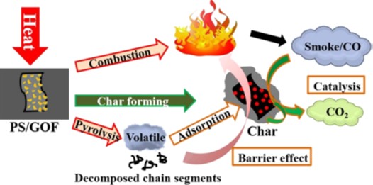 图2 GOF在PS复合材料热降解过程中的阻燃和催化氧化机理示意图